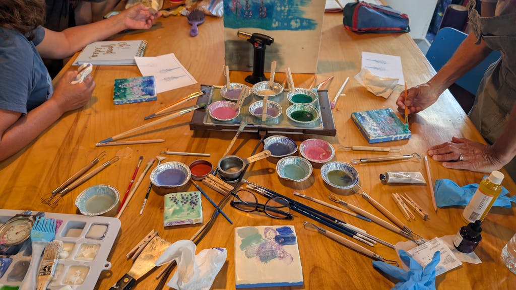We really enjoyed the wide variety of rich colours in the starter pack when we were fishing around for pigments for a lesson in egg tempera painting.